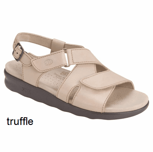 Wide leather straps gently hug the foot to add security to your step. A broad and contoured insole covered in soft microfiber supports the natural arch of the foot. An adjustable EZ Strap offers a custom fit and added comfort, while a soft sole rebounds with each step.
